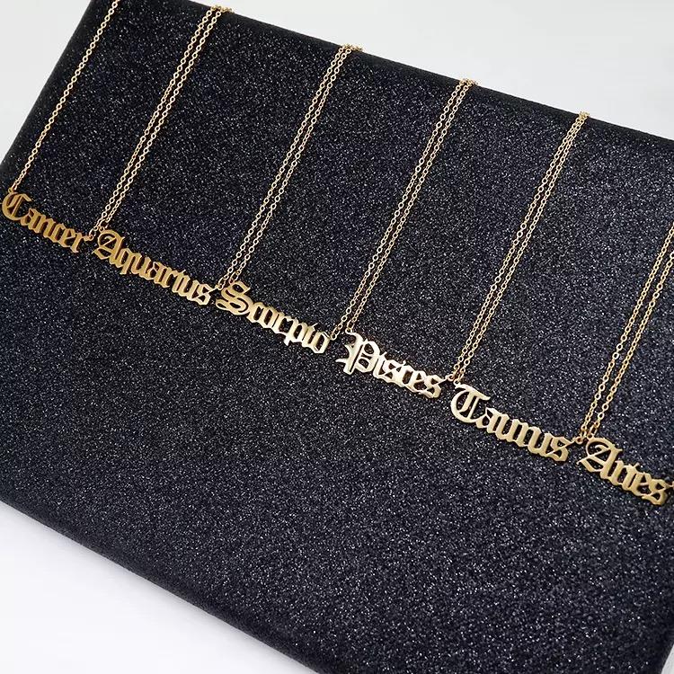 Old English Zodiac Necklace - Stainless Steel Gold Plated